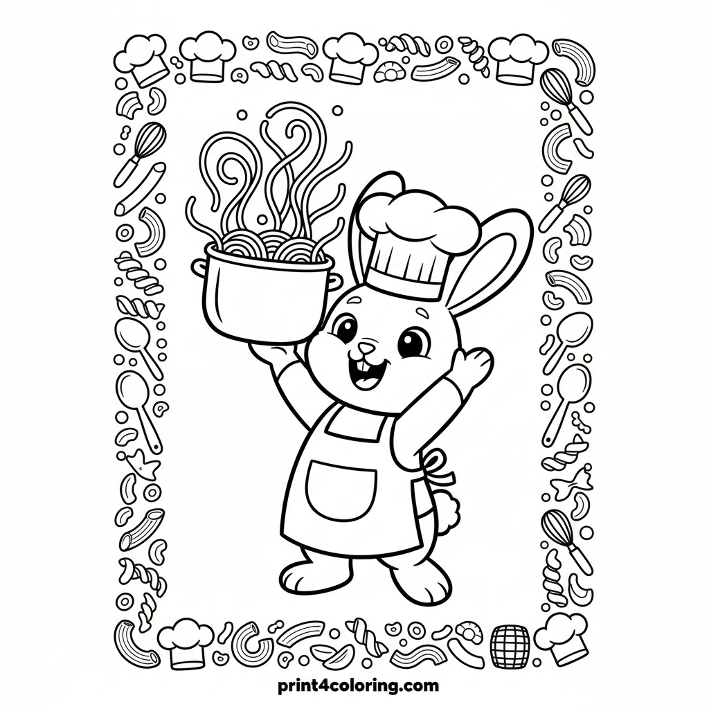 #bunny#chef#pasta#spaghetti#cooking#cartoon#food#kitchen#playful#animals#coloring-page#printable