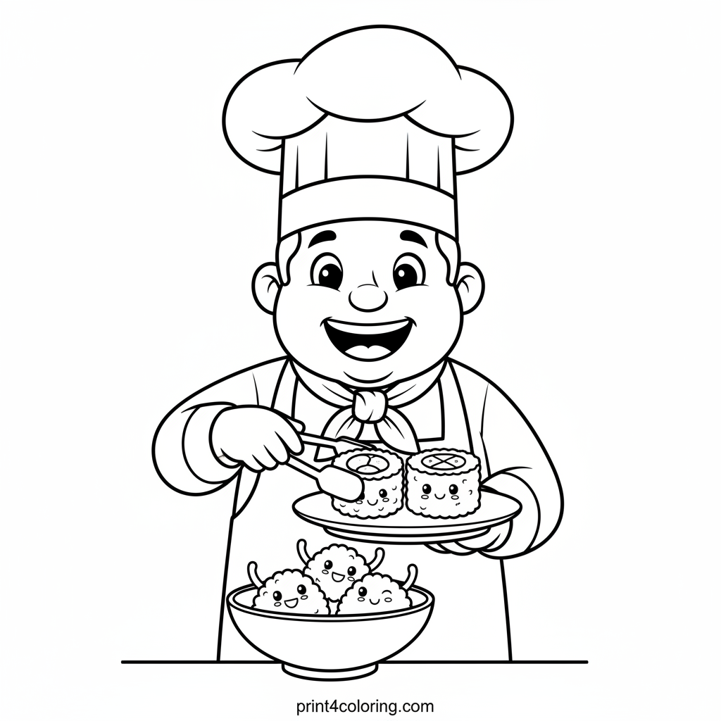 #chef#sushi#cooking#vegetables#cartoon#food#coloring-page#printable