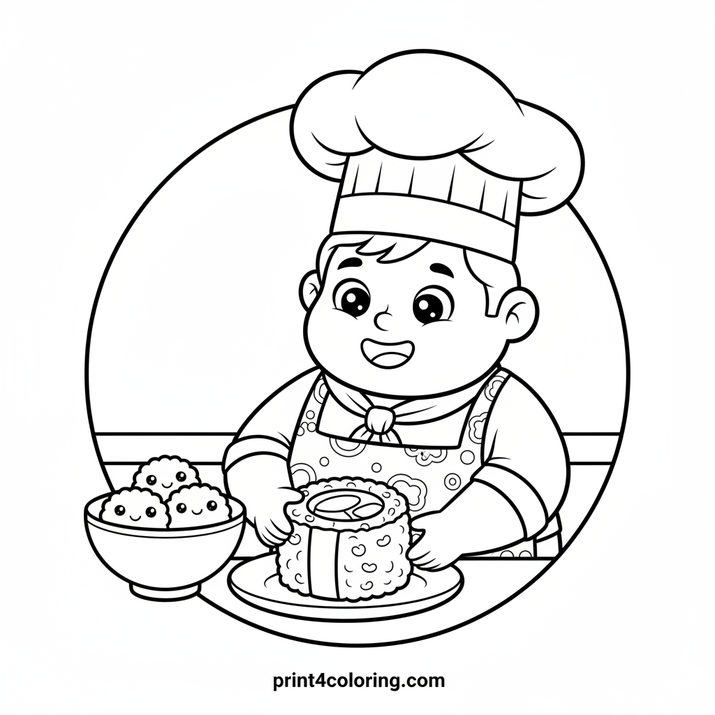 Chef Rici's Smiling Sushi Surprise Coloring Page
