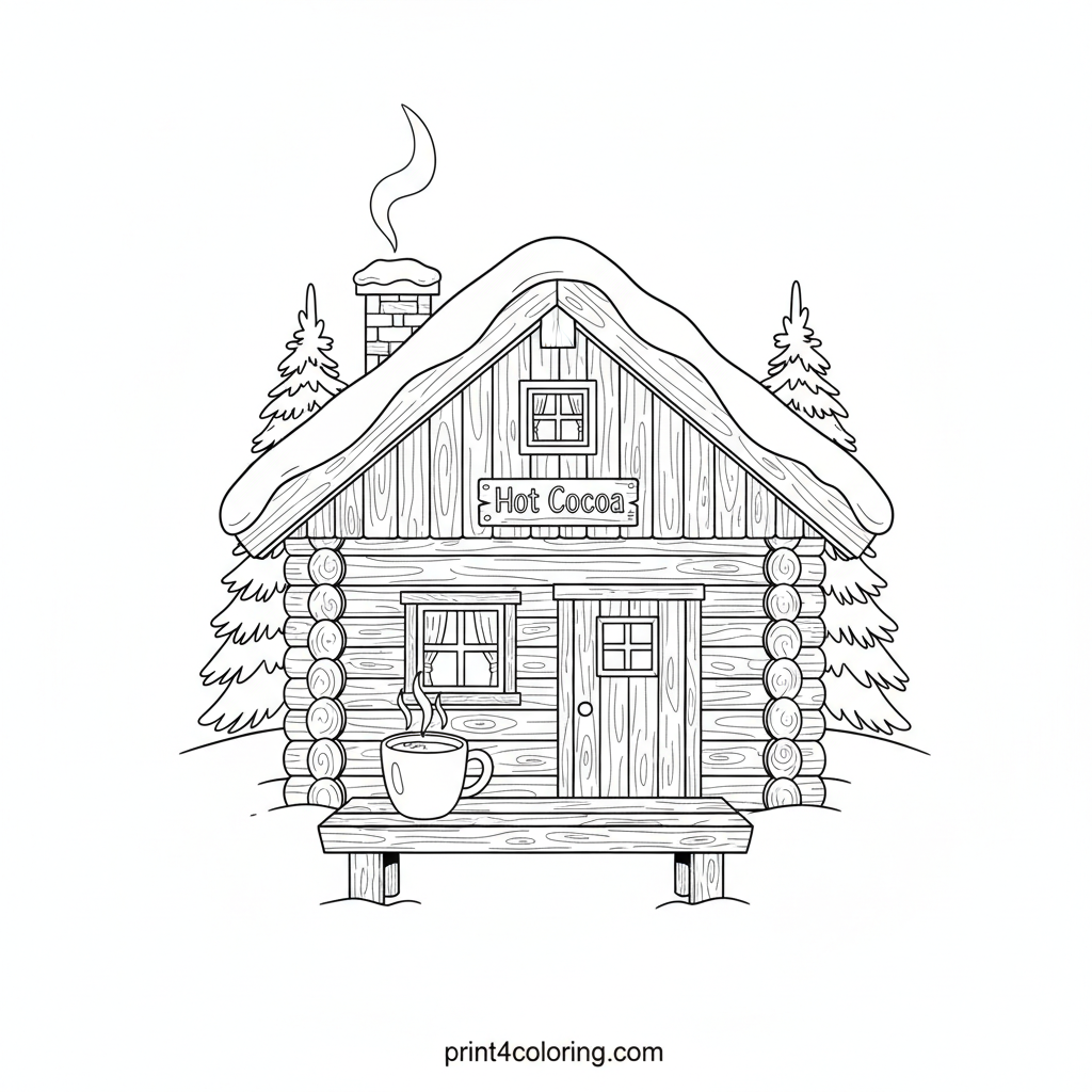 Cozy Alpine Cocoa Cabin Retreat Coloring Page