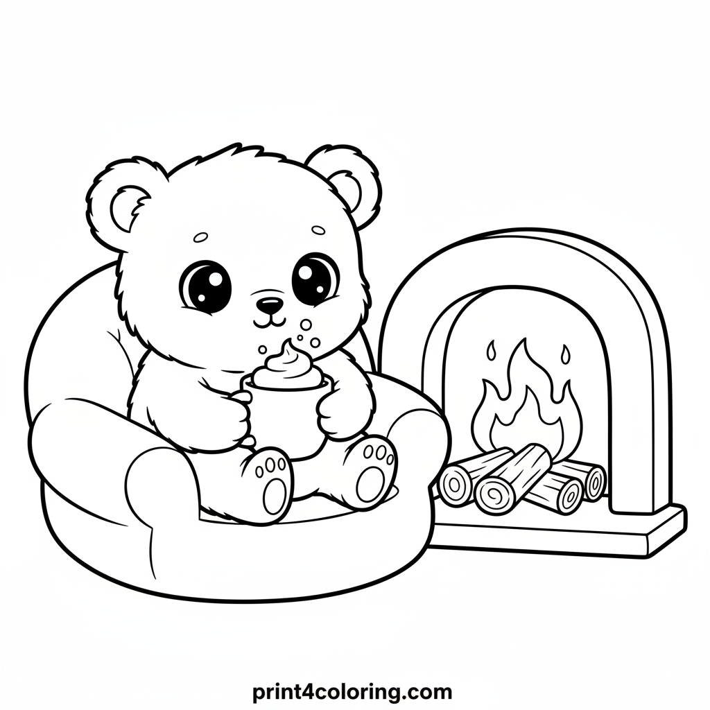 Cozy Bear's Fireside Cocoa Delight Coloring Page