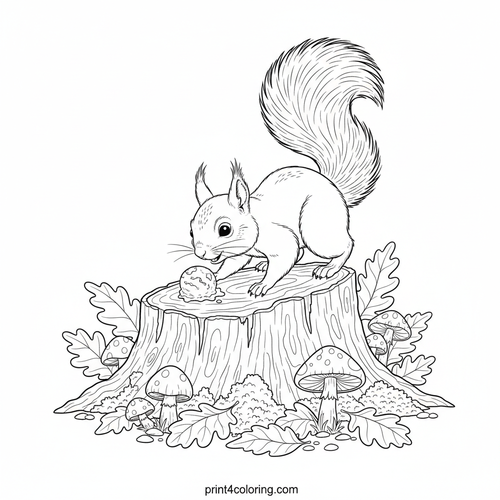 Join a charming squirrel with a magnificent bushy tail as it discovers a sweet surprise! This intricate scene shows our forest friend delicately sniffing a dropped scoop of ice cream on a mossy tree stump. Surrounded by detailed leaves and whimsical mushrooms, it's a delightful challenge for expert colorists!