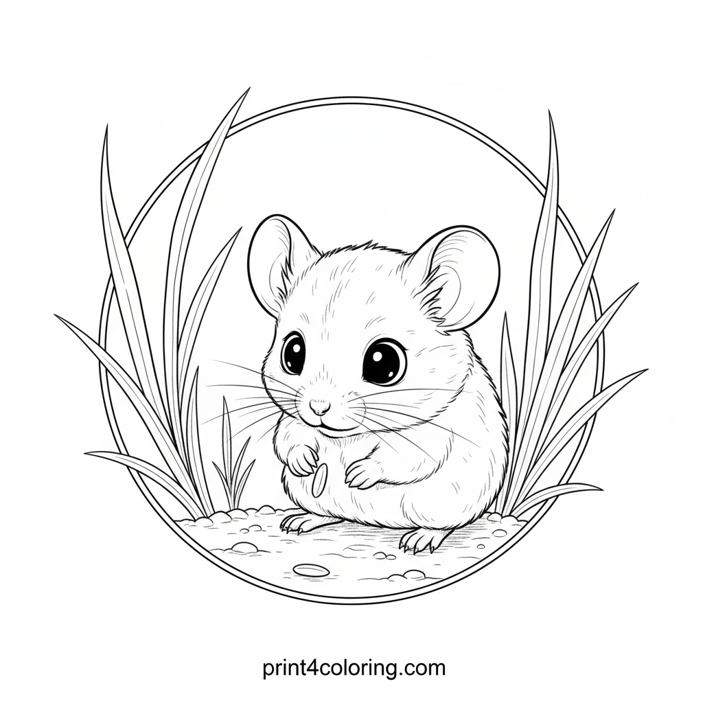 Step into a charming moment of nature! A delicate field mouse, with alert eyes and tiny paws, carefully picks up a single rice grain. Surrounded by blades of grass and a rice plant, this cozy and detailed scene invites you to bring its quiet beauty to life with your favorite colors.