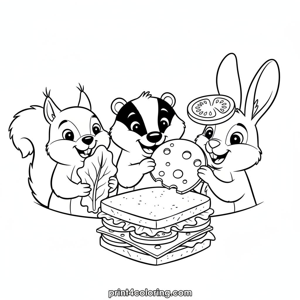 Forest Friends' Epic Sandwich Stack Coloring Page