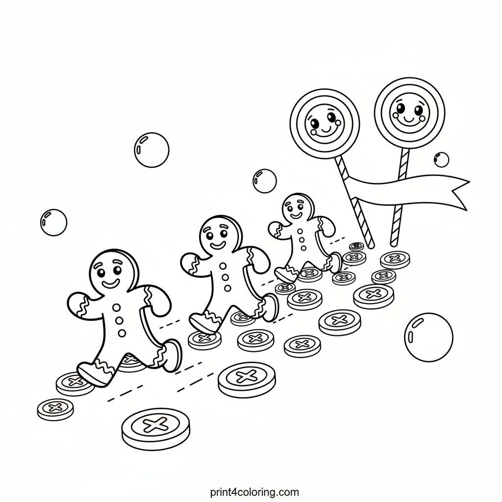Gingerbread Dash: Sweet Race to the Finish! Coloring Page