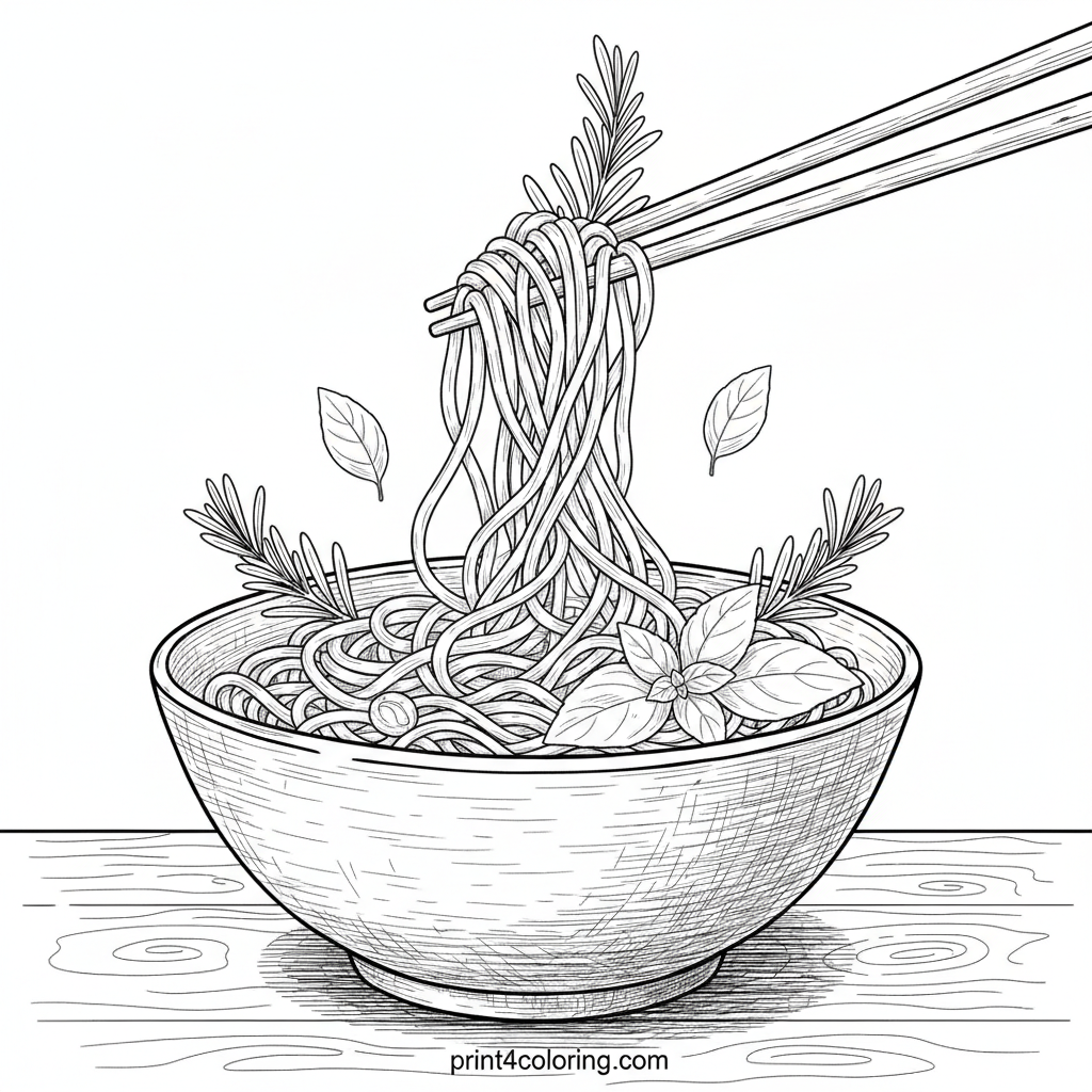 #noodles#food#still-life#herbs#kitchen#gourmet#detailed#coloring-page#printable