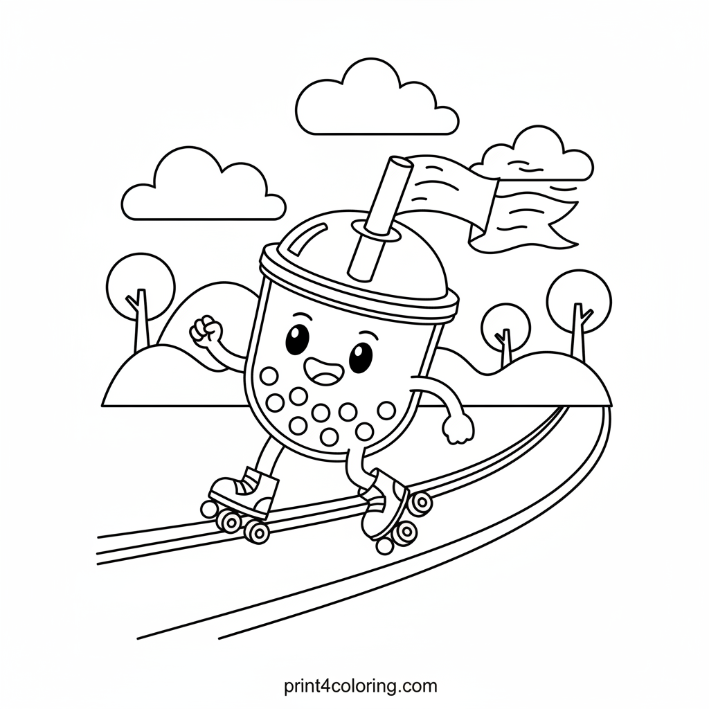 Join our cheerful boba tea friend as it zips along on tiny boba pearl roller skates! Watch its straw wave like a flag in the wind. This adorable boba character is having the best time on its exciting race. Get ready to add vibrant colors to its bubbly adventure!