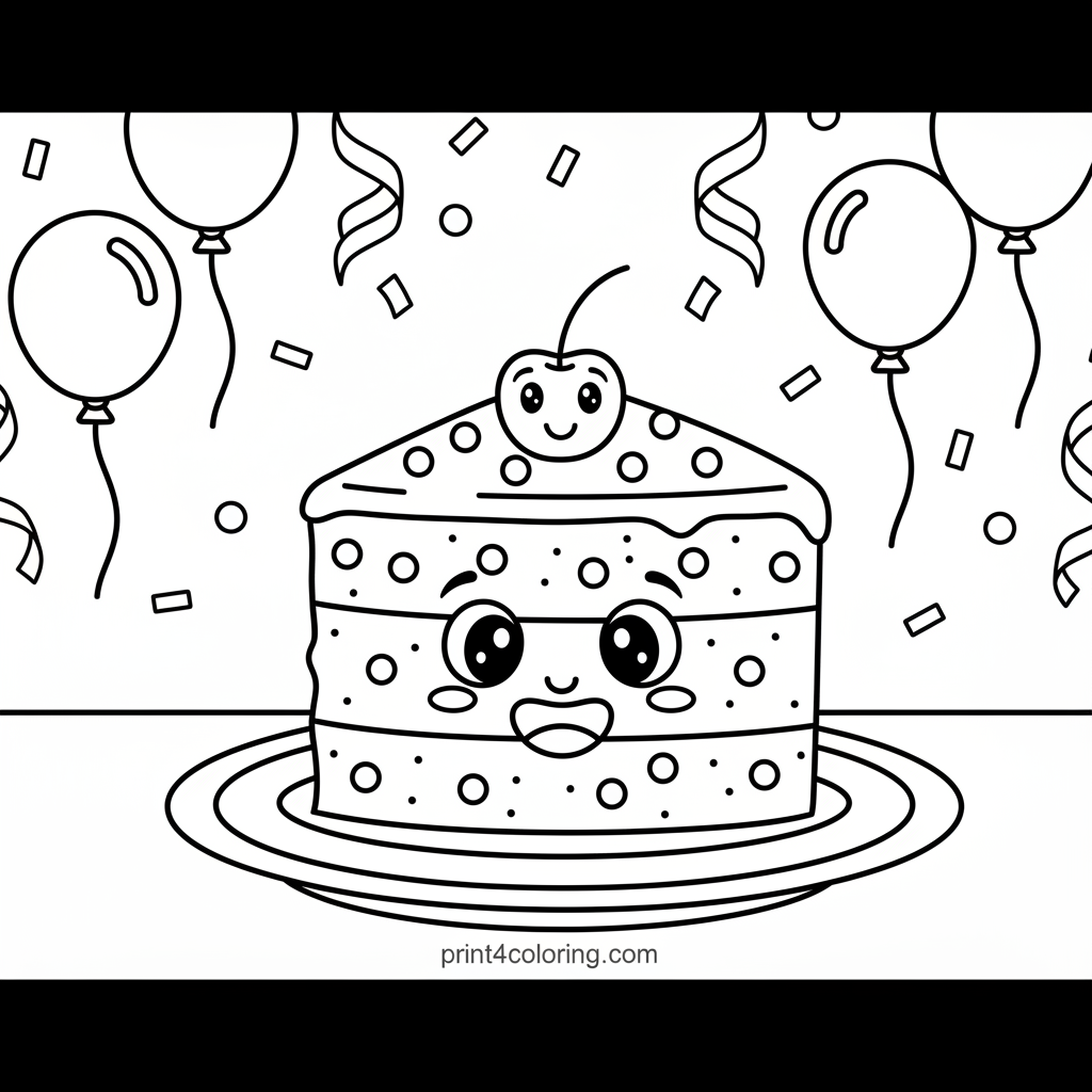 - 4🌈 **Smiling Face** - Give the cake a cheerful smile! You can use pink for its cheeks and a happy red for its mouth to show how excited it is to be colored.