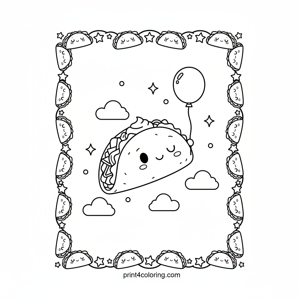 Happy Taco's Dreamy Sky Ride Coloring Page
