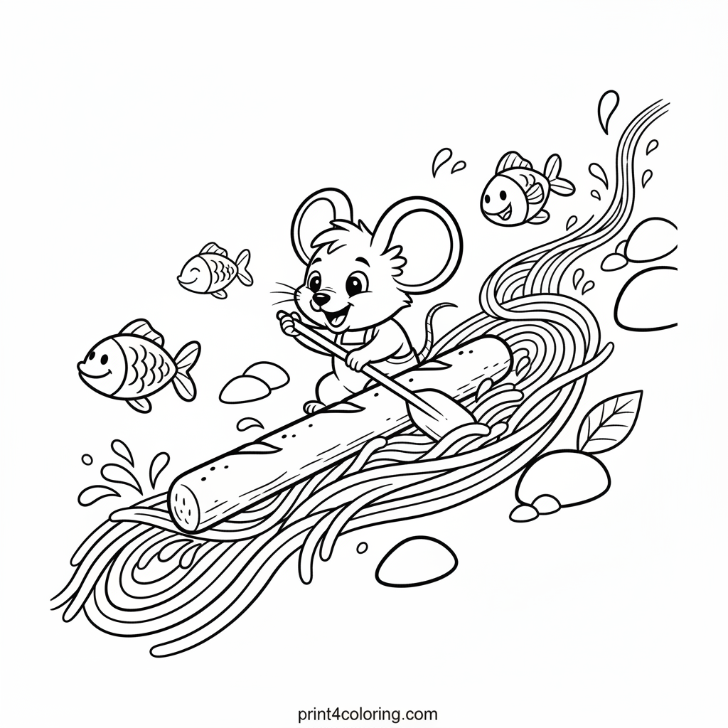 The Great Noodle River Adventure: A Mouse's Cheesy Journey Coloring Page