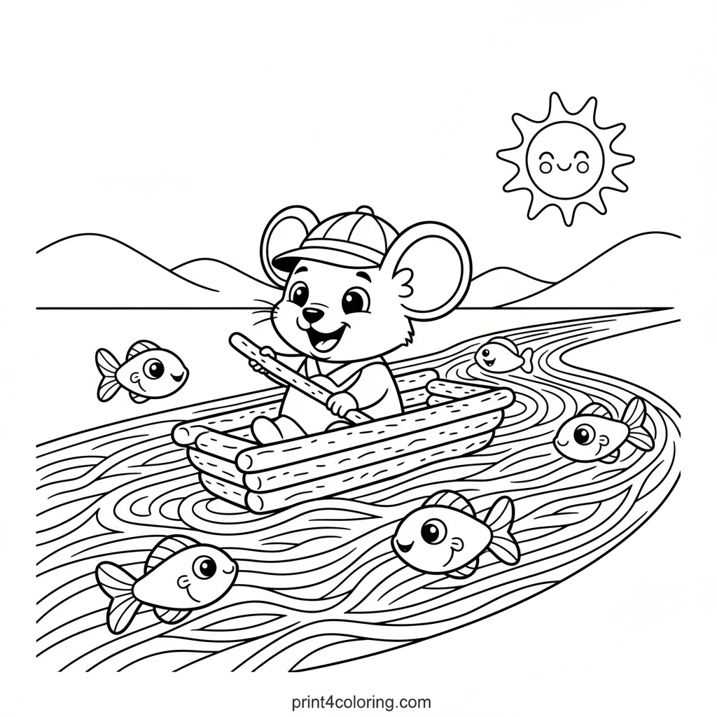 Embark on a culinary quest with our brave little adventurer! This delightful page shows a small explorer happily floating down a winding river made of delicious, wavy noodles. Their sturdy breadstick boat glides past friendly, fish-shaped noodles swimming alongside. Get ready to color a world where food and fun collide!
