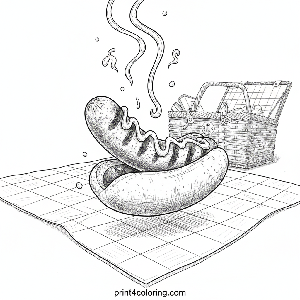 Picnic Perfection: The Gourmet Hotdog Coloring Page