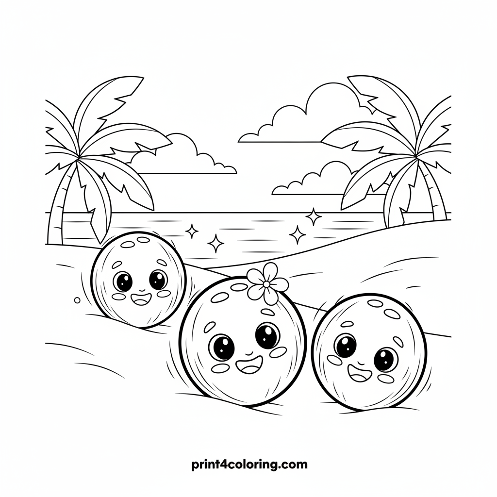 - 2🖍️ **Coconut Characters** - Give each coconut a unique shade of brown or green for its shell. Make their happy faces stand out with a contrasting color!