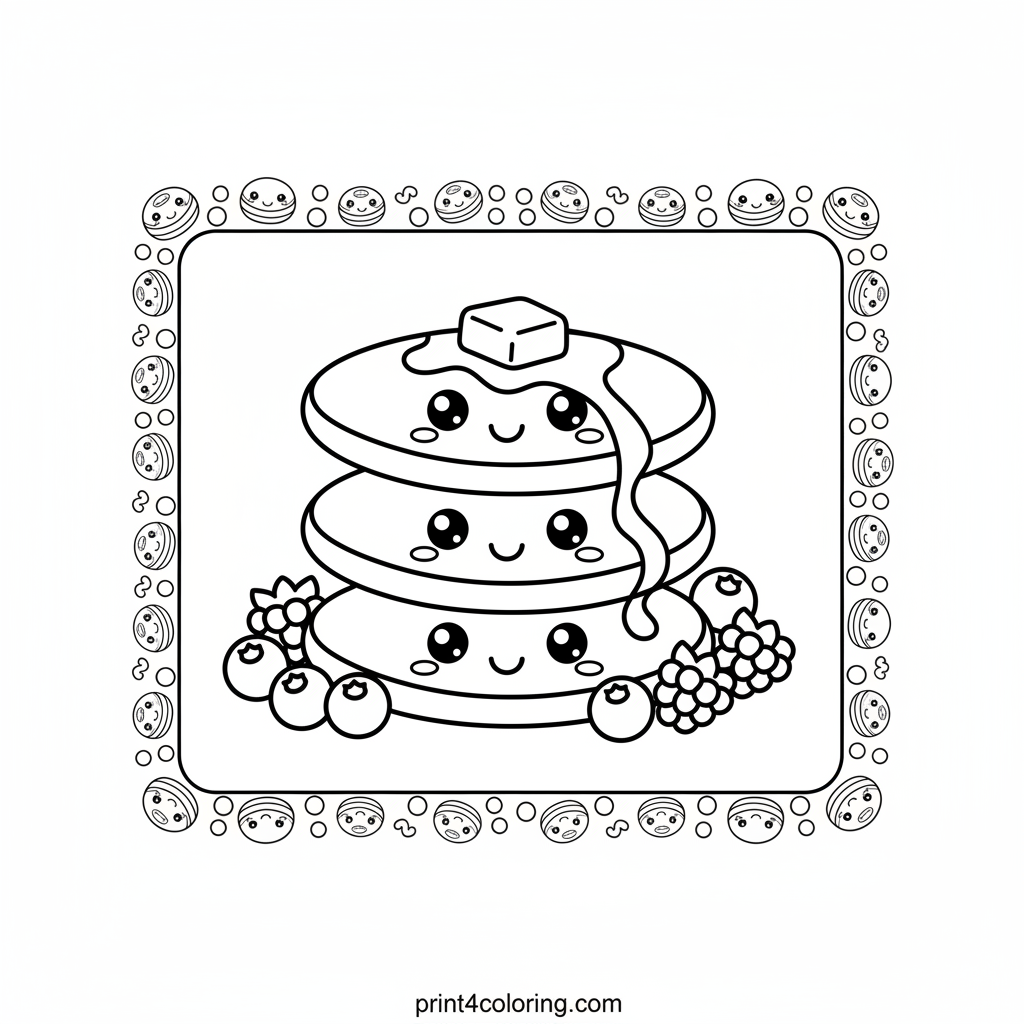 #pancakes#breakfast#food#happy#cartoon#berries#syrup#easy#coloring-page#printable
