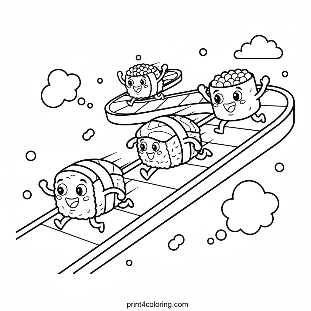 Speedy Sushi Conveyor Belt Race! Coloring Page