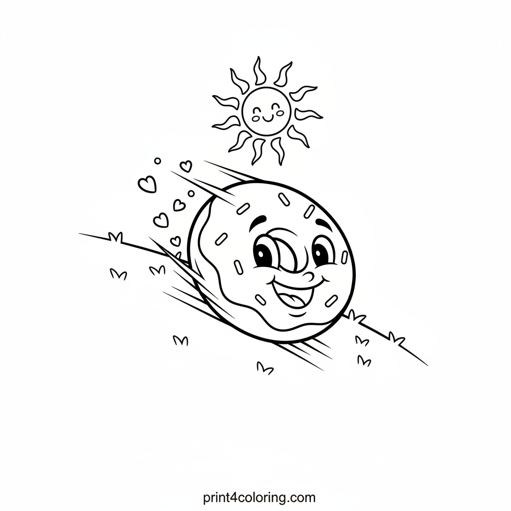 #donut#sprinkles#rolling#adventure#hill#sun#sweet#dessert#coloring-page#printable