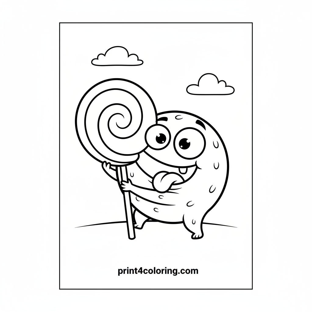 Sweet Struggle: The Monster's Giant Lollipop Coloring Page