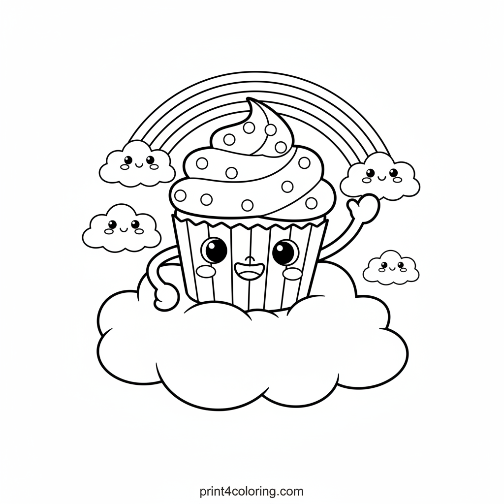 Float into a world of sweetness with our Happy Little Cupcake Friend! This adorable cupcake, complete with a big smile, cheerful eyes, and colorful sprinkles, is waving hello from a soft, fluffy cloud. Get ready to add your favorite colors to this delightful scene and make this sweet treat truly shine!