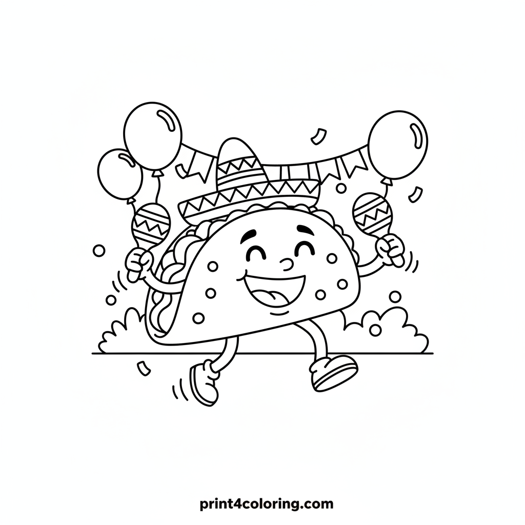 #taco#fiesta#food#party#sombrero#maracas#dancing#mexican#celebration#coloring-page#printable