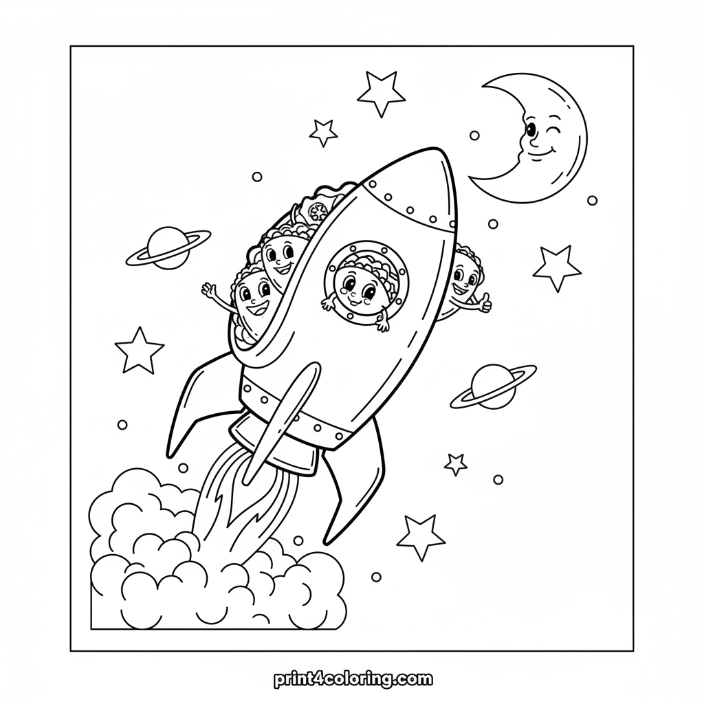 #taco#rocket#moon#space#food#funny#adventure#coloring-page#printable