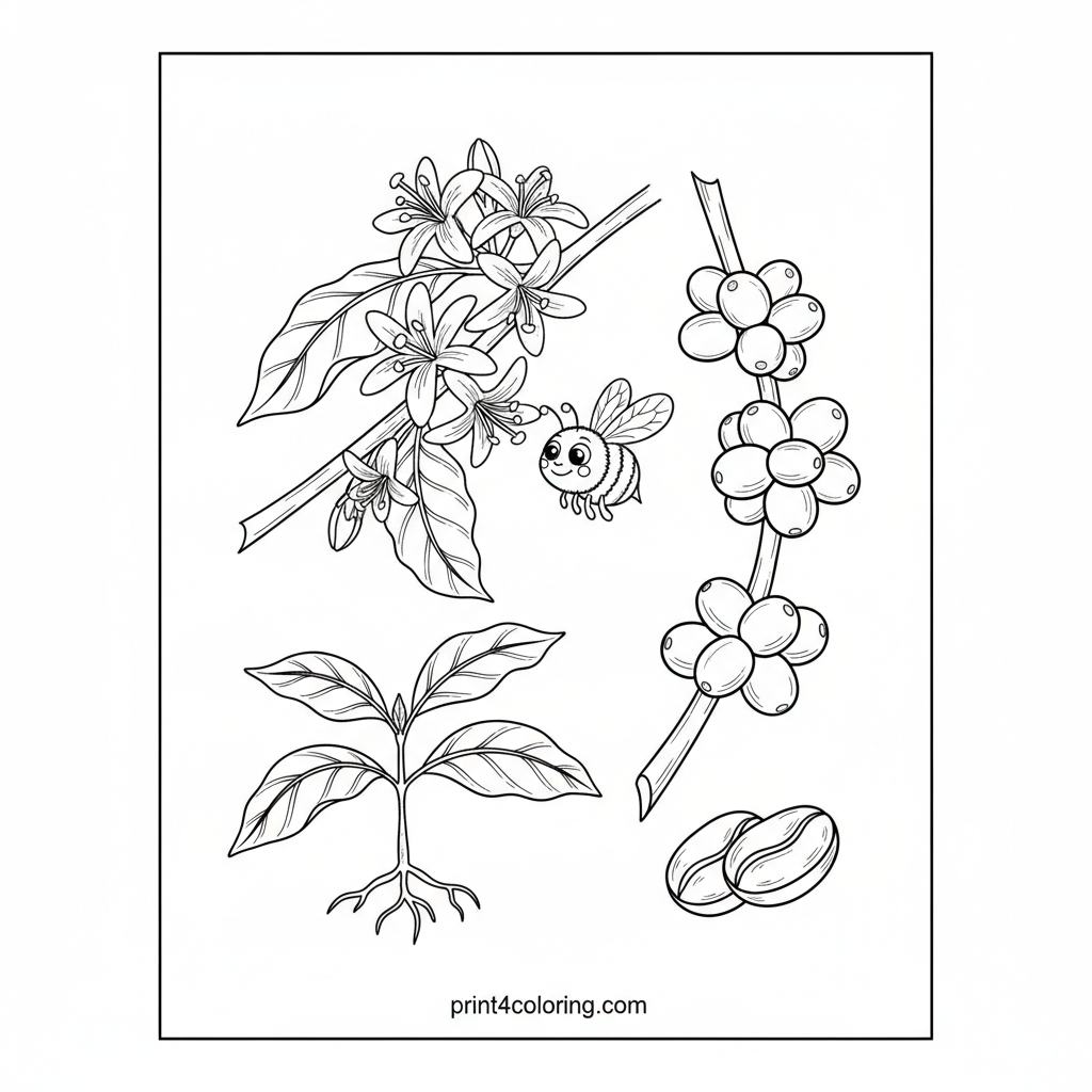 #coffee#plant#life-cycle#botanical#flowers#cherries#bee#nature#educational#expert#coloring-page#printable