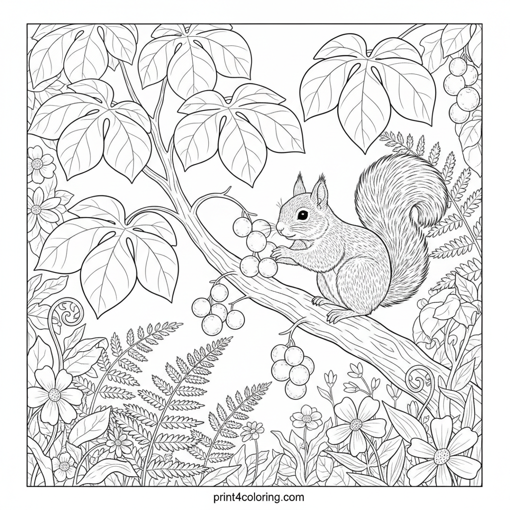 The Enchanted Tapioca Garden: A Squirrel's Sweet Surprise Coloring Page