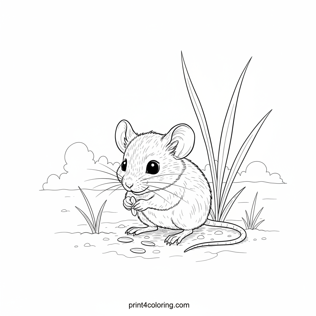 Step into a serene natural scene! This detailed coloring page features an adorable field mouse, with bright, curious eyes, carefully gathering a single rice grain. Surrounded by textured earth and delicate blades of grass, it's a quiet moment of nature's bounty. Perfect for aspiring artists to bring to life with subtle colors.
