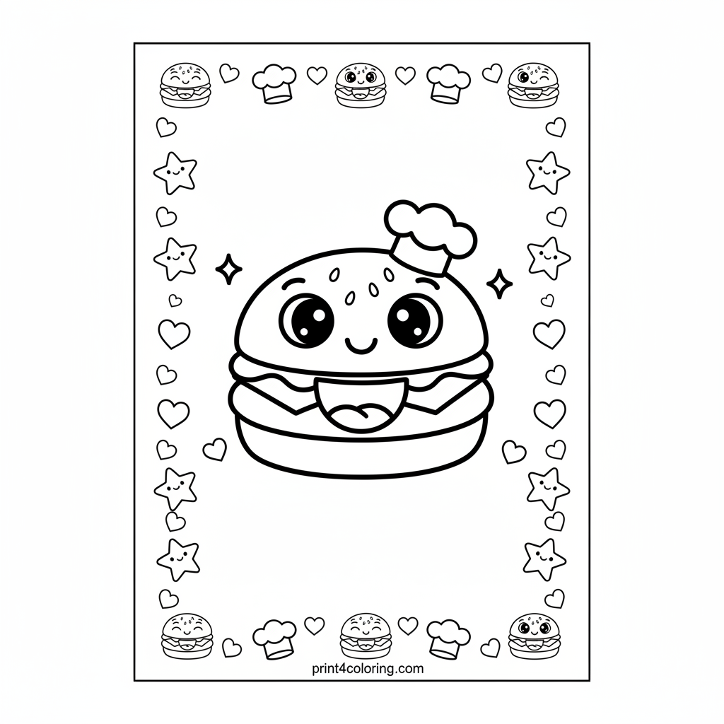 #burger#food#happy#cartoon#chef#stars#hearts#funny#giggle#coloring-page#printable