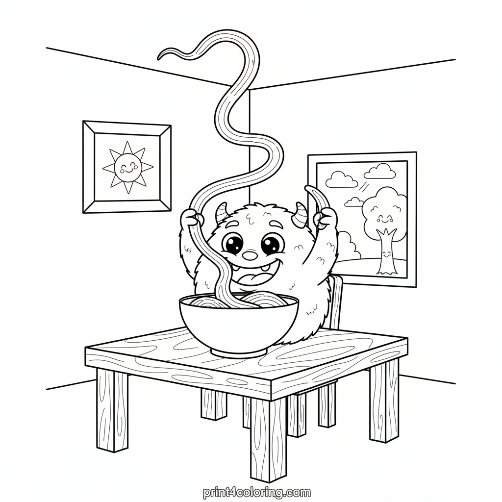 - 4🌈 Background Fun - Add some yummy food items or playful bubbles in the background to show how happy the monster is in its noodle-filled world.
