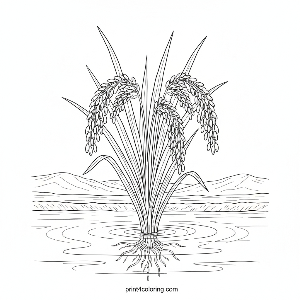 The Golden Grain: Detailed Rice Plant Study Coloring Page