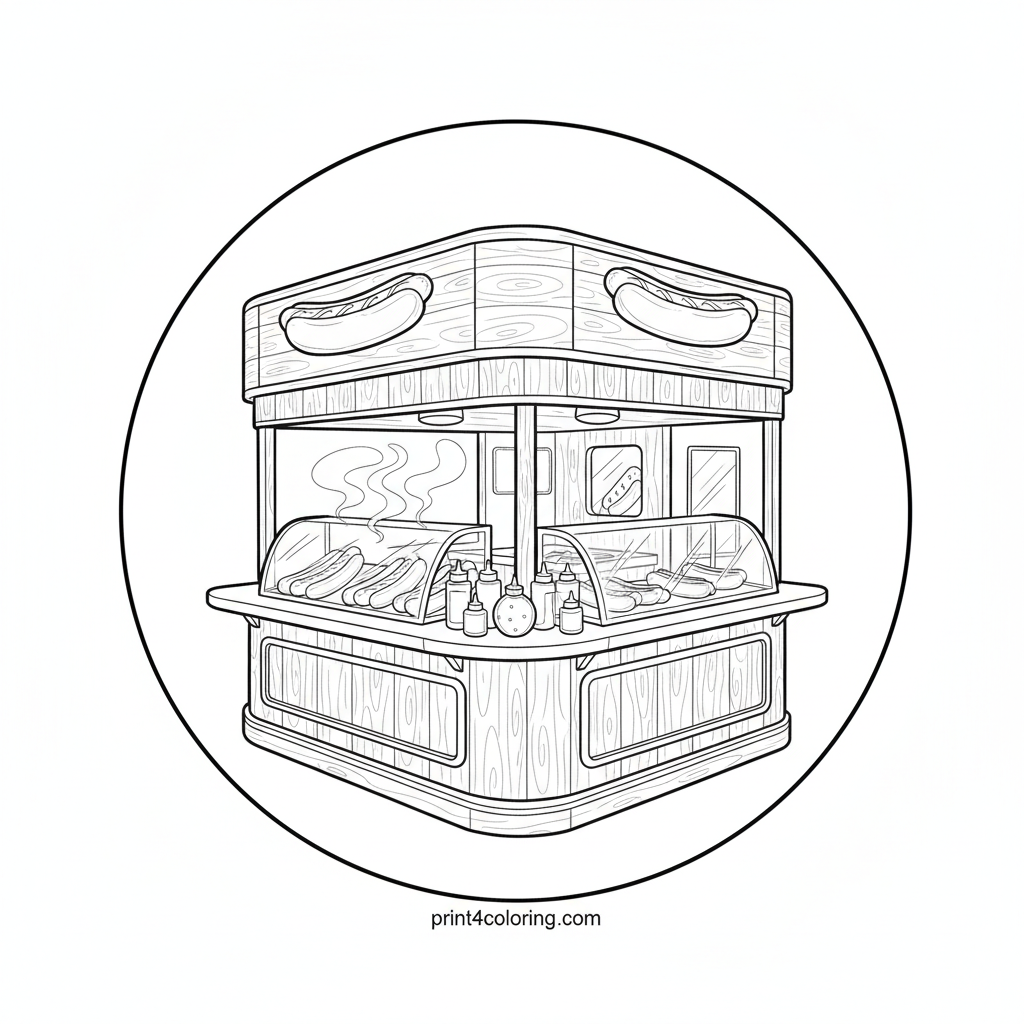 The Grand Hotdog Stand: Vintage Street Food Charm Coloring Page