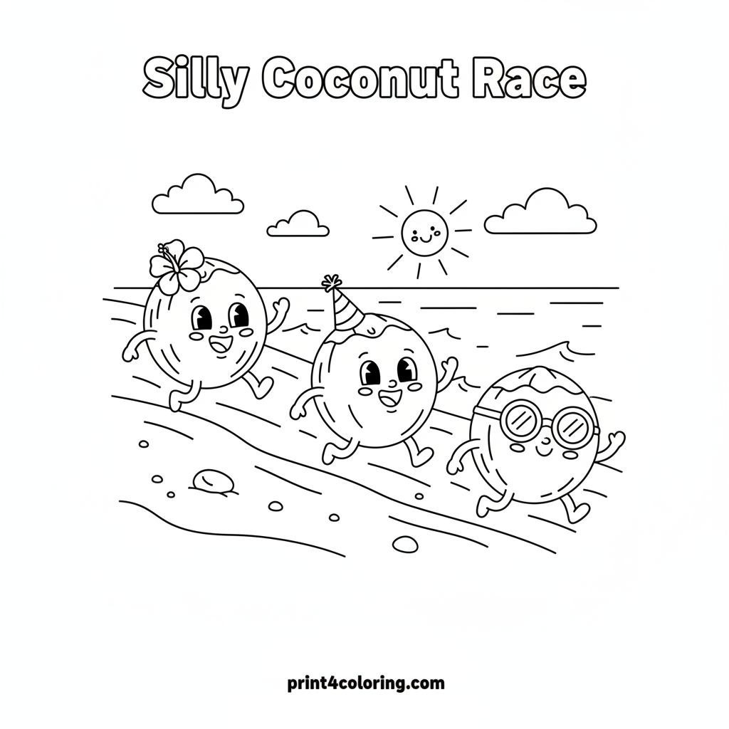 #coconut#race#beach#ocean#silly#tropical#fruit#coloring-page#printable