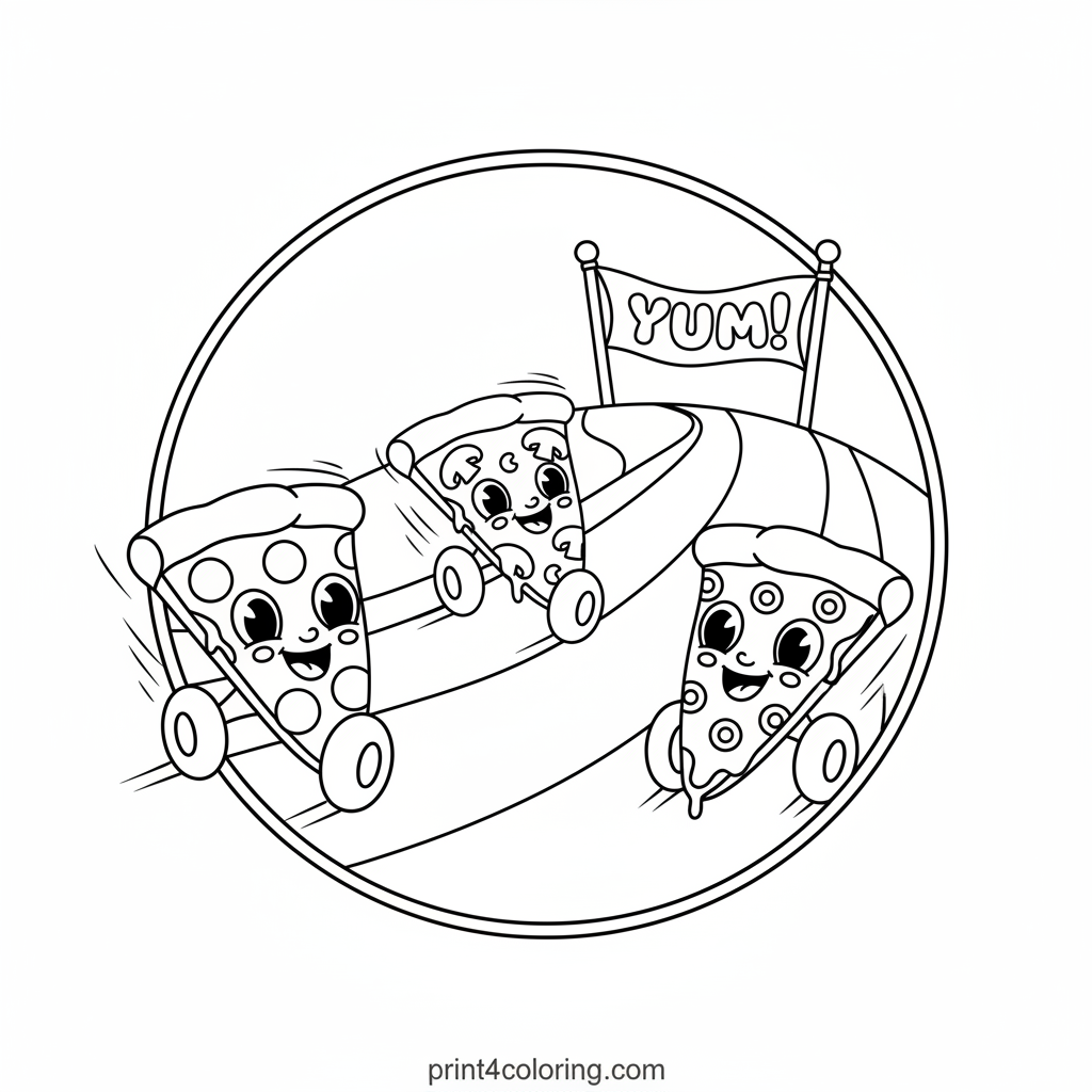 #pizza#race#food#whimsical#cartoon#fun#yummy#wheels#coloring-page#printable
