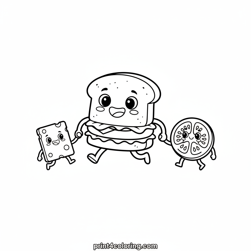 #sandwich#food#happy#friends#cheese#tomato#kitchen#lunch#coloring-page#printable