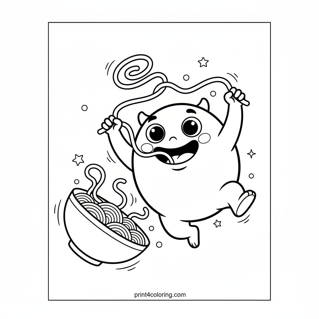 The Happy Noodle Slurp Monster's Delight Coloring Page