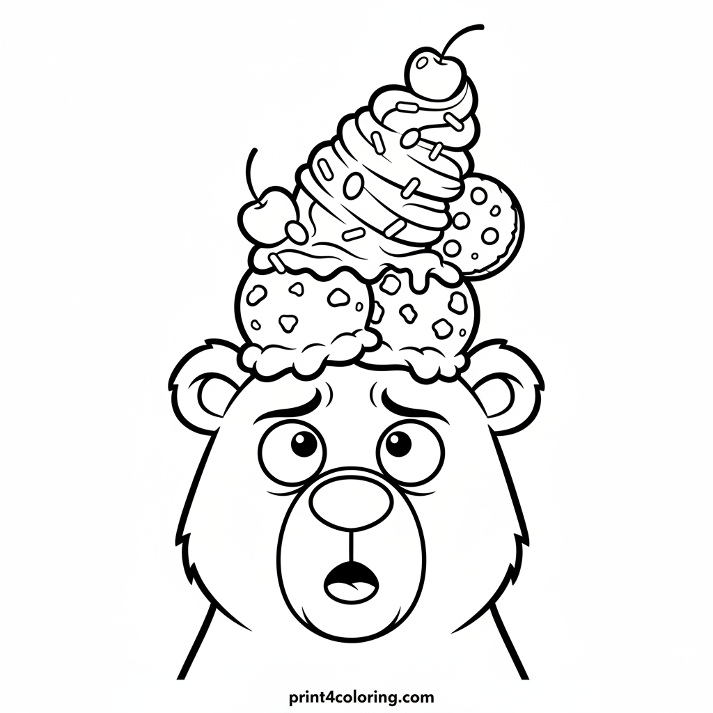 Get ready for a sweet challenge! A silly, friendly bear is carefully balancing a super tall, wobbly ice cream sundae. Piled high with scoops, whipped cream, and yummy toppings, this bear needs your help! Use your colors to keep this delightful dessert from tumbling over.