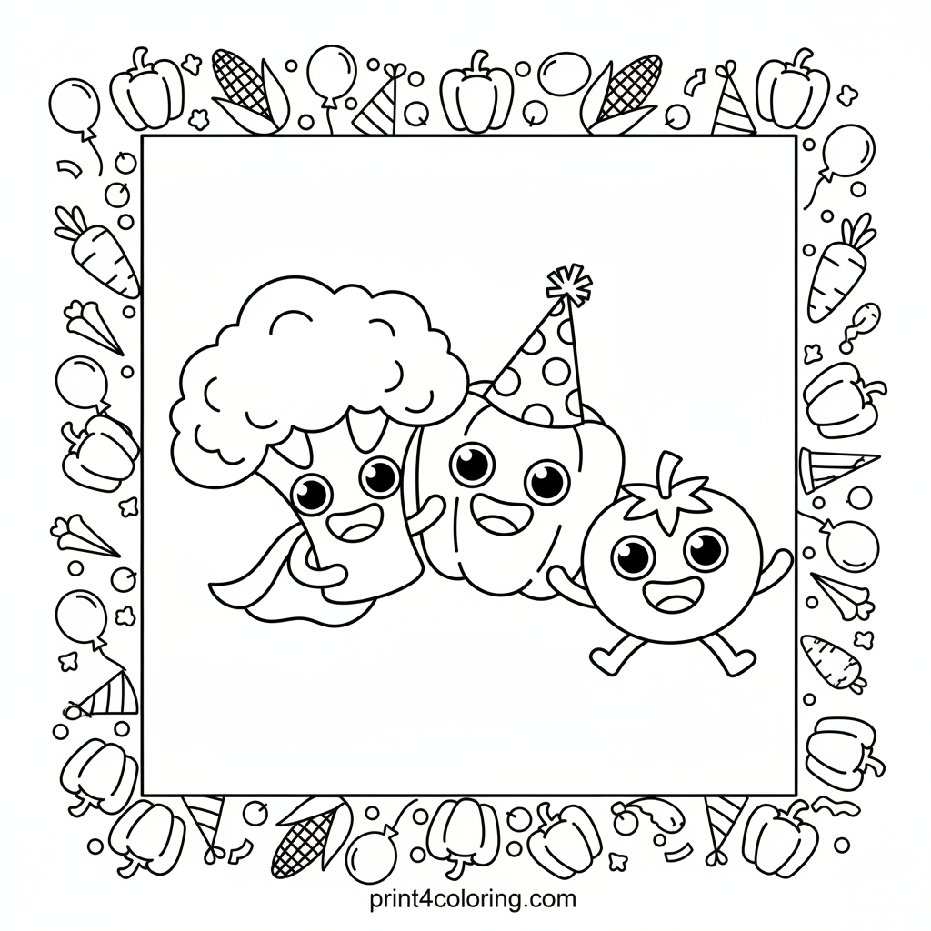 - 4🌈 **Background Fun** - Think about what kind of party room these veggies are in. You can add streamers, balloons, or confetti in the background using all your favorite rainbow colors!