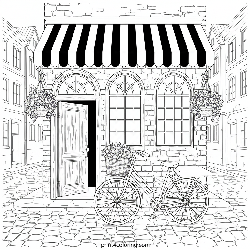 Vintage Pizzeria Charm: A European Street Scene Coloring Page