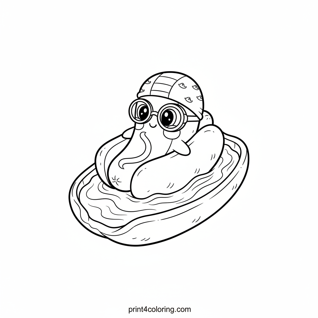 Join Wienerschnitzel for the most delicious pool party ever! Our friendly hotdog character, wearing a tiny swim cap and goggles, is ready to make a big splash. He's poised on the edge of a giant bun-shaped "swimming pool" filled with wavy mustard. Get ready to color this cute and cozy dive!