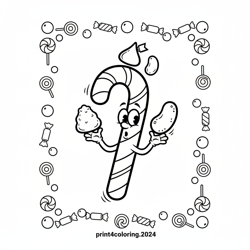Wobbly Candy Cane's Sweet Juggling Mishap Coloring Page