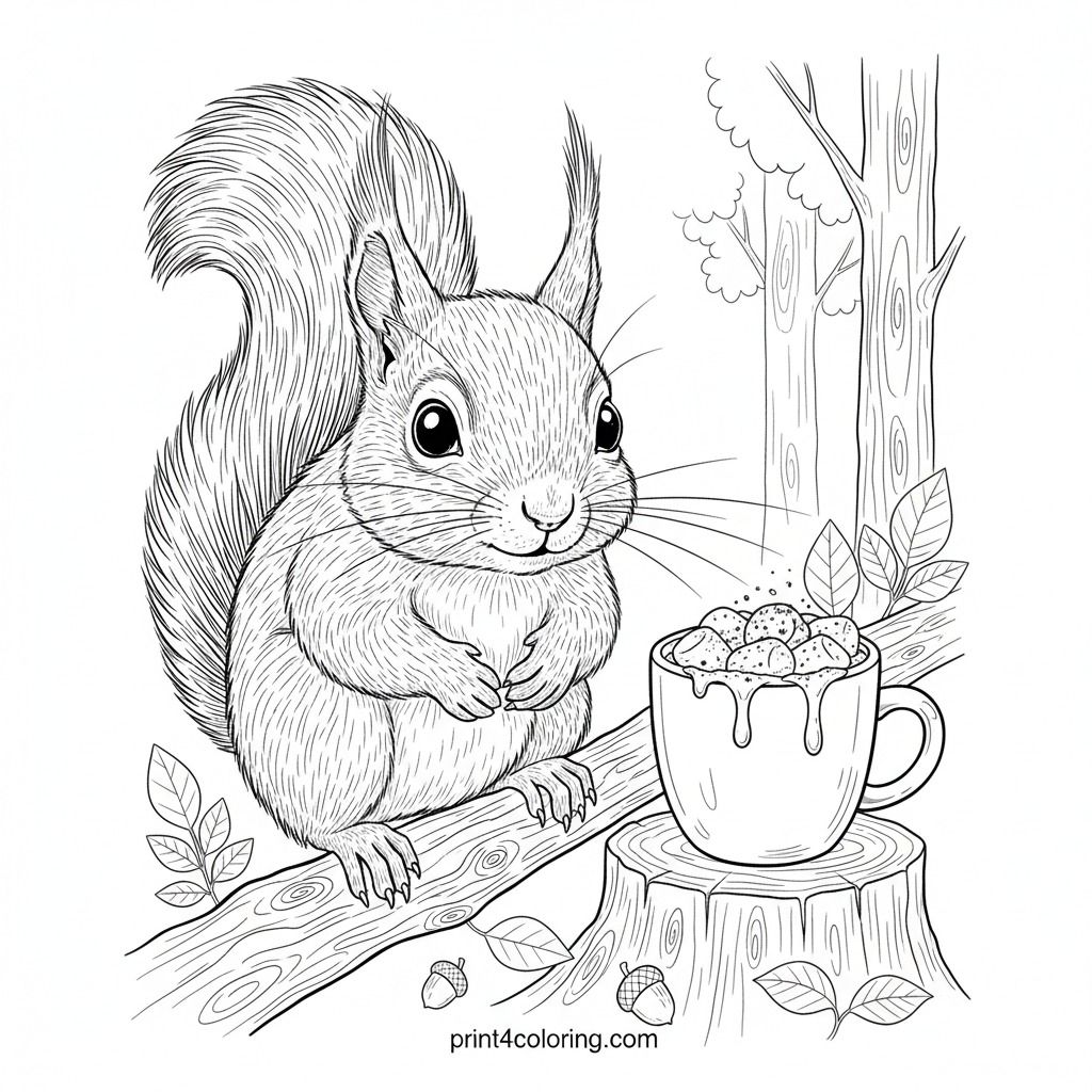 Woodland Squirrel's Steaming Cocoa Delight Coloring Page