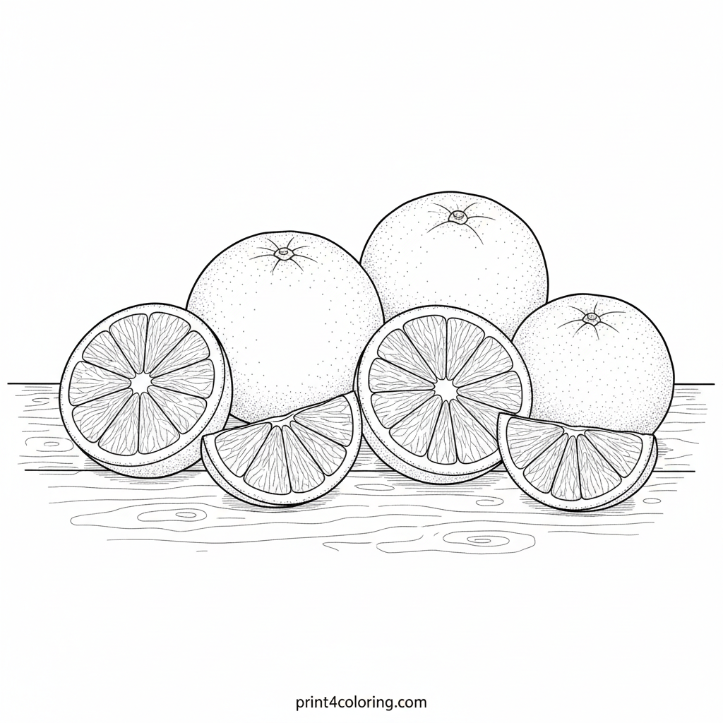 A Symphony of Oranges: Zesty Citrus Still Life Coloring Page
