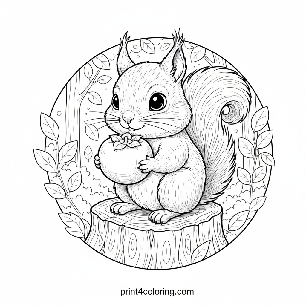 Autumn's Delight: A Squirrel's Persimmon Feast Coloring Page