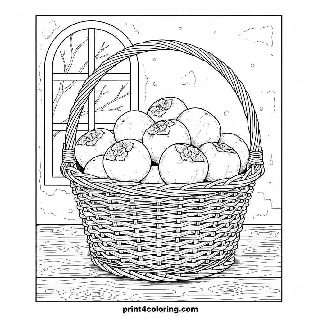 Autumn's Golden Bounty: Persimmon Harvest Basket Coloring Page