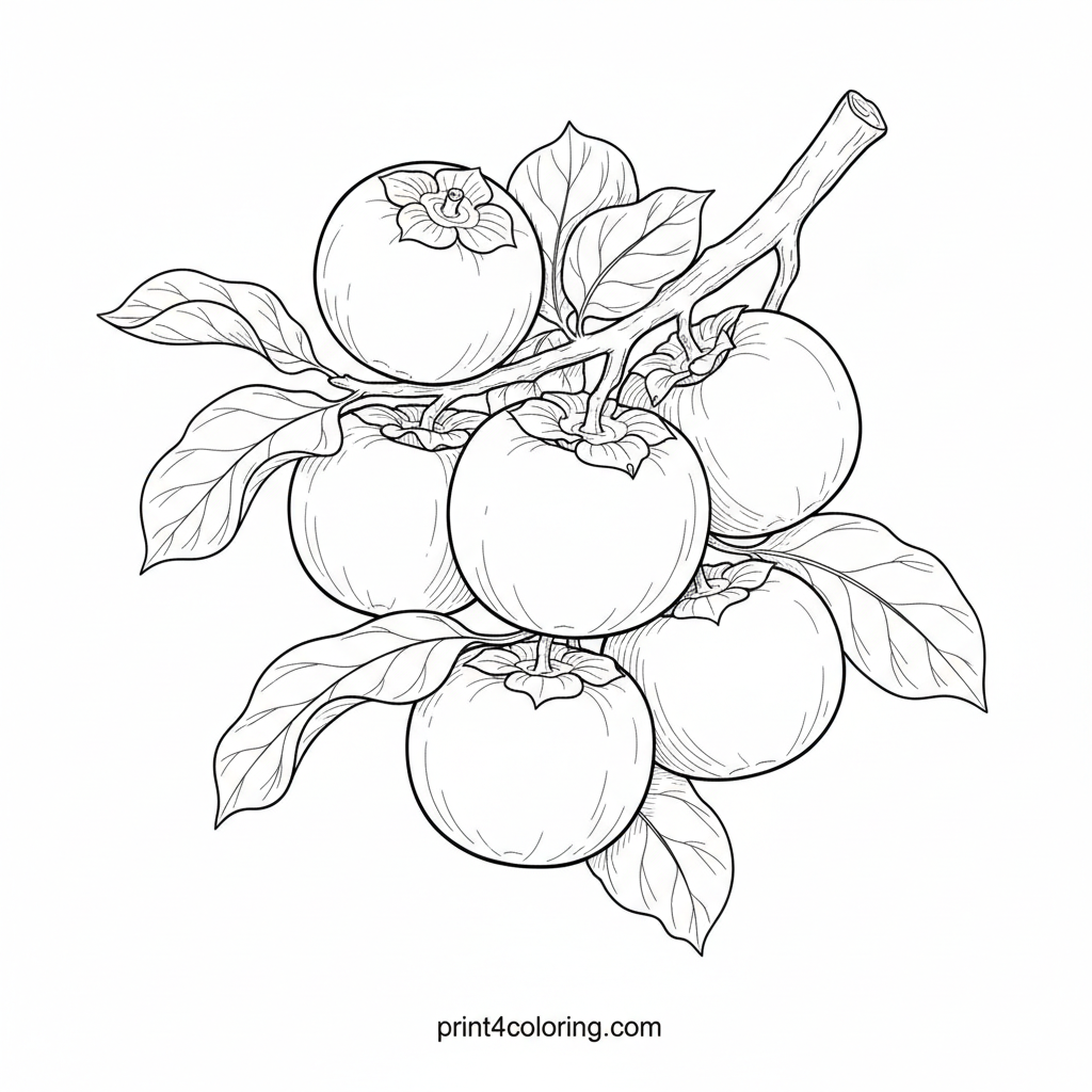 Autumn's Golden Bounty: Ripe Persimmons Coloring Page