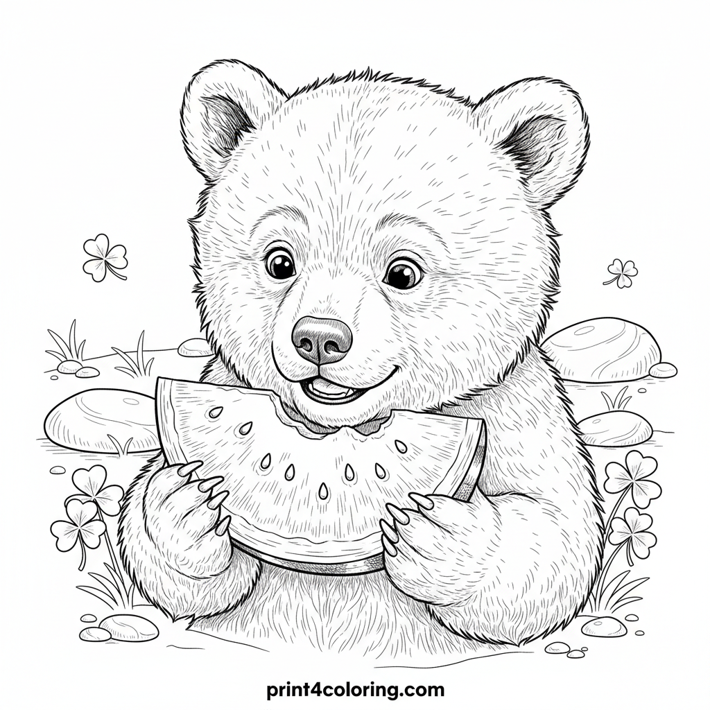 - 4🌈 Expressive Eyes - Give the bear cub's eyes life with a dark pupil and a tiny white highlight to show its focus and curiosity on the watermelon.