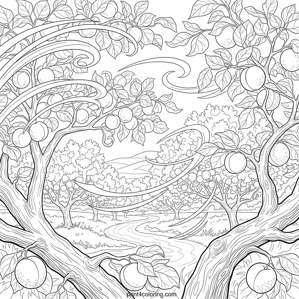 #apricot#orchard#fruit#nature#summer#harvest#landscape#coloring-page#printable
