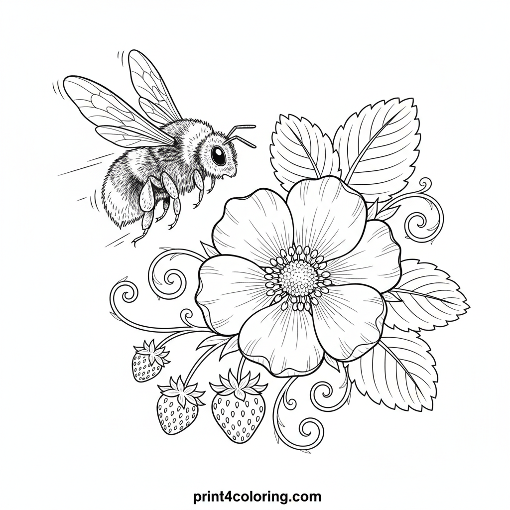 Bumblebee's Sweet Strawberry Pollination Coloring Page