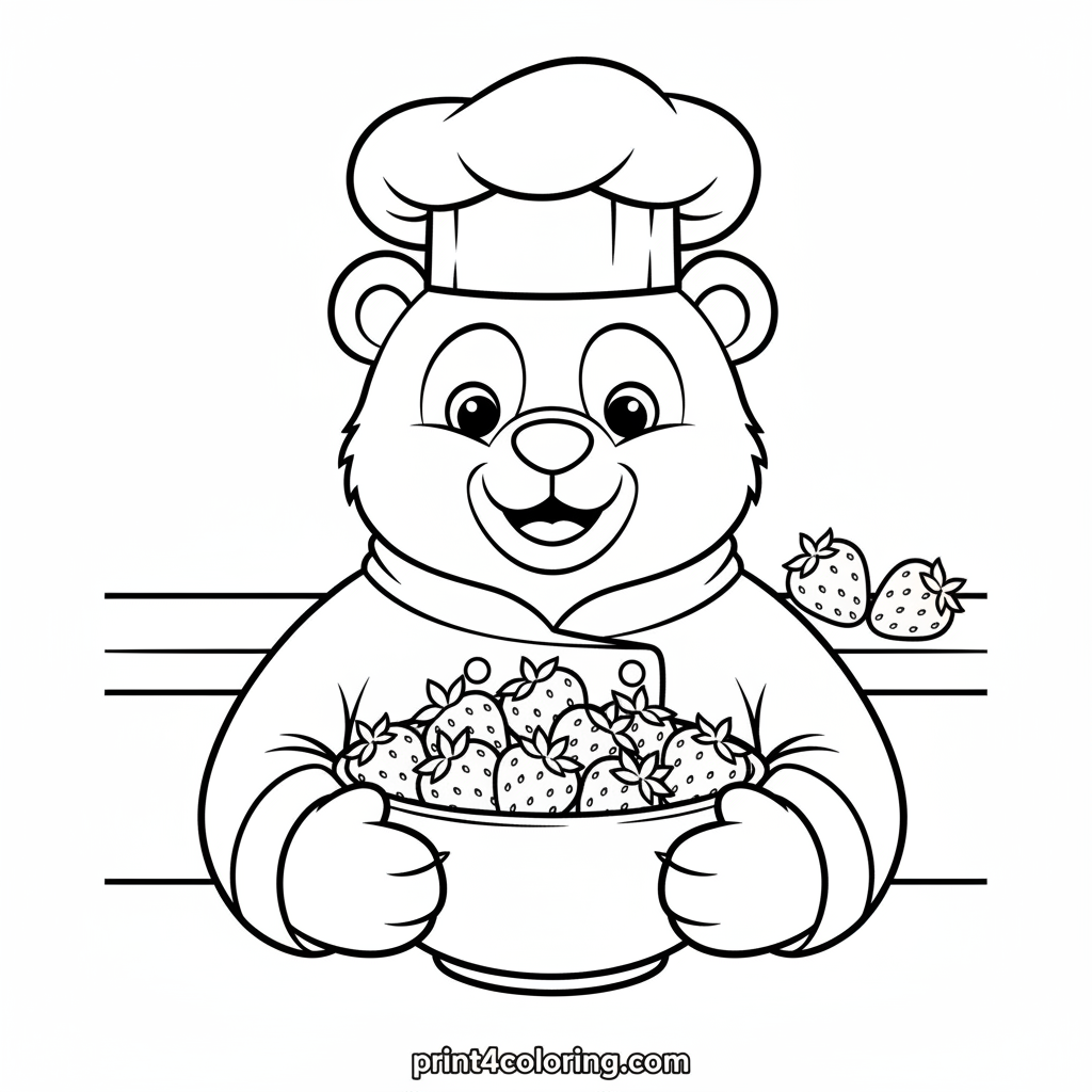 Chef Bear's Sweet Strawberry Delight Coloring Page