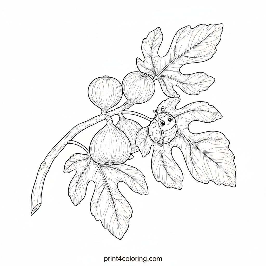 Explore the intricate beauty of a fig tree branch with this detailed botanical study. Discover ripe and unripe figs nestled among their distinctive lobed leaves, all drawn in a charming nature journal style. This expert coloring page invites you to highlight the delicate veins and subtle textures, creating a cozy and realistic masterpiece.